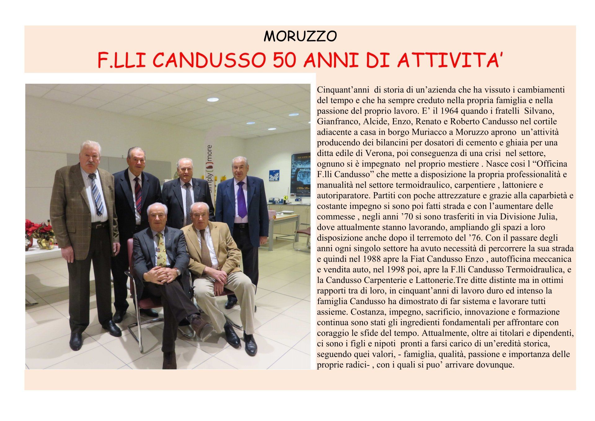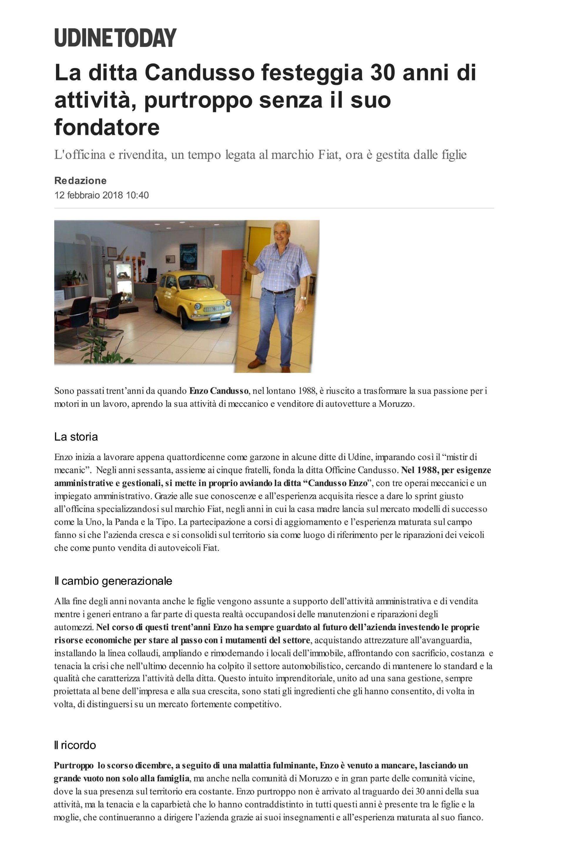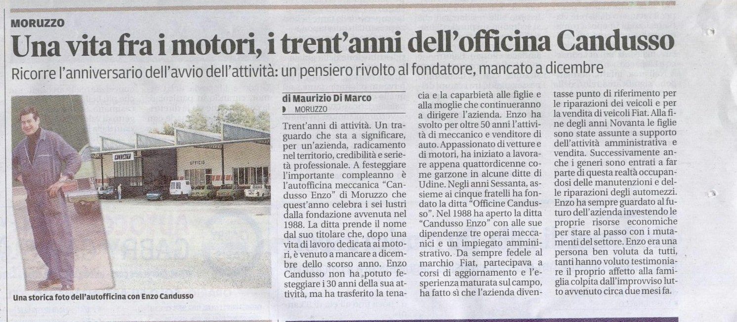 Era il 1988 quando ha iniziato la sua attività in proprio come meccanico e venditore di auto a Moruzzo, ma già negli anni 60 aveva fondato assieme ai 5 fratelli la ditta Officine Candusso.